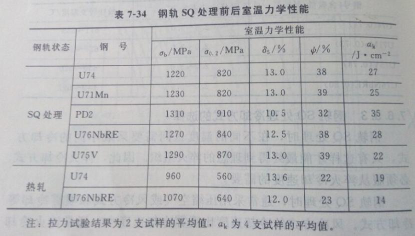 經(jīng)感應(yīng)加熱SQ處理的國(guó)產(chǎn)鋼軌的力學(xué)性能及加熱參數(shù)分別列于下圖和下表中。圖中經(jīng)SQ處理后鋼軌的強(qiáng)度得到顯著提高,其中屈服強(qiáng)度提高25%-30%,沖擊韌性提高30%-50%,伸長(zhǎng)率提高約10%。感應(yīng)加熱SQ處理工藝在國(guó)內(nèi)50-60kg.m-1級(jí)鋼軌生產(chǎn)中得到廣泛應(yīng)用。