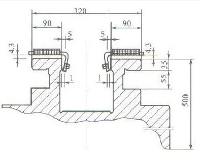 a.感應(yīng)器及與導(dǎo)軌的間隙如圖2-34所示,為使淬火導(dǎo)軌表面加熱及溫度均勻,分別在感應(yīng)器預(yù)熱圈和加熱圈粘相同數(shù)量的導(dǎo)磁體。為避免導(dǎo)軌棱角處燒損,應(yīng)將此處鐵屑、油污等清理干凈,并去毛刺,將棱角處適當?shù)光g。b.為減少淬火后的導(dǎo)軌下凹變形,上導(dǎo)軌面淬火前加工成中間上凸0.20~0.25mm